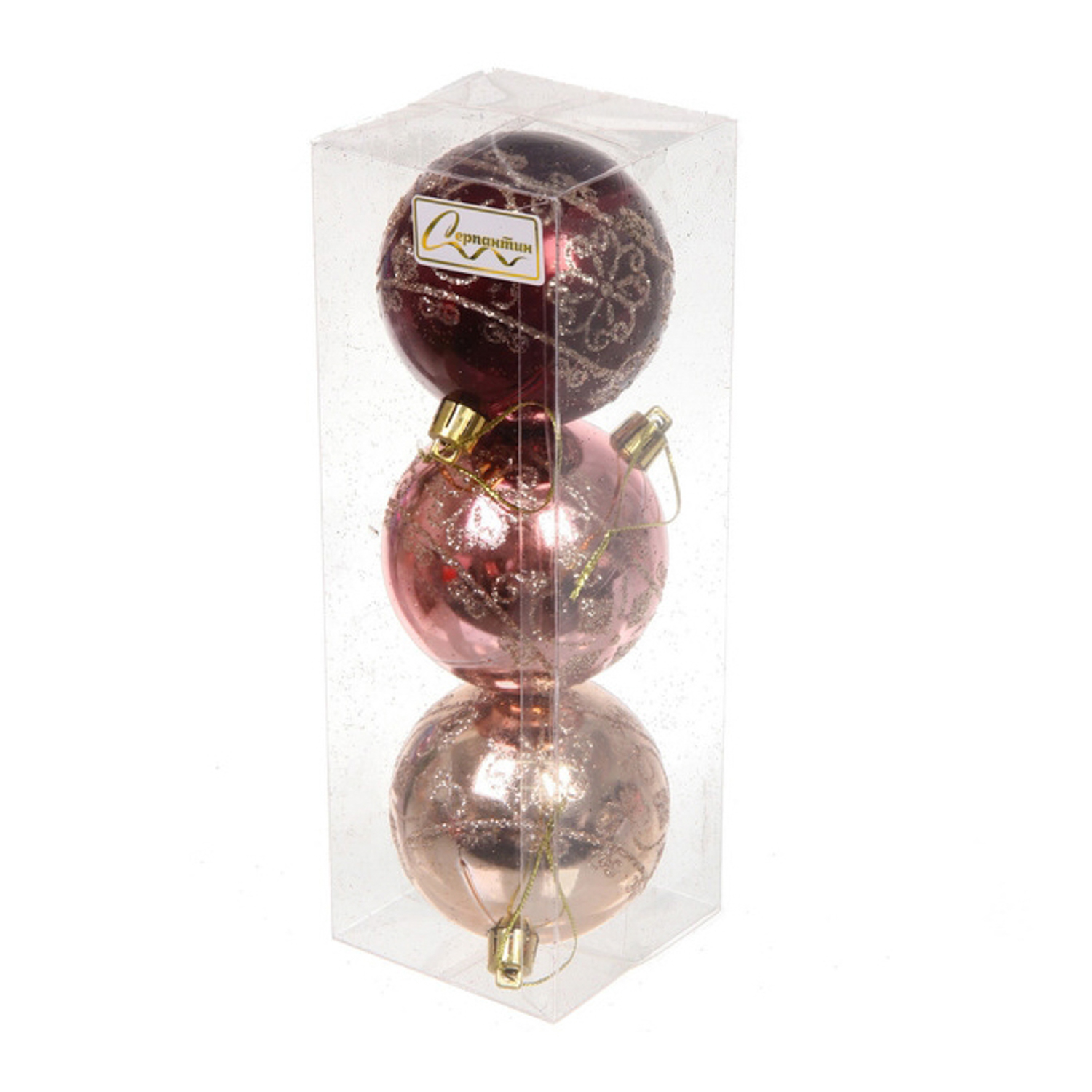 Новогодние шары 7см (набор 3шт) "Ажур", шампань/роз.золото/рубин