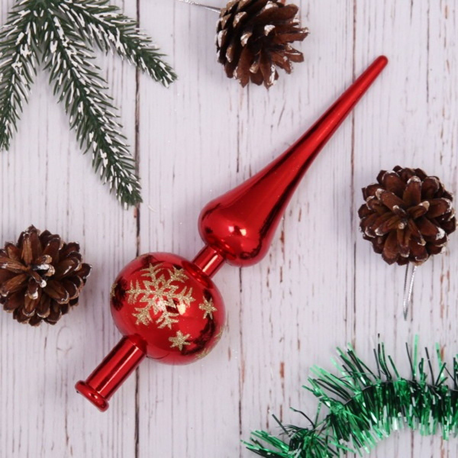 Верхушка на елку Серпантин «Снежинка», 23 см, красный