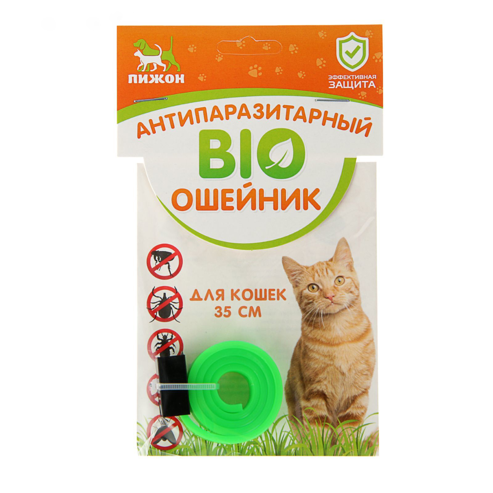 Биоошейник антипаразитарный "ПИЖОН" для кошек от блох и клещей, зеленый, 35 см   2641317