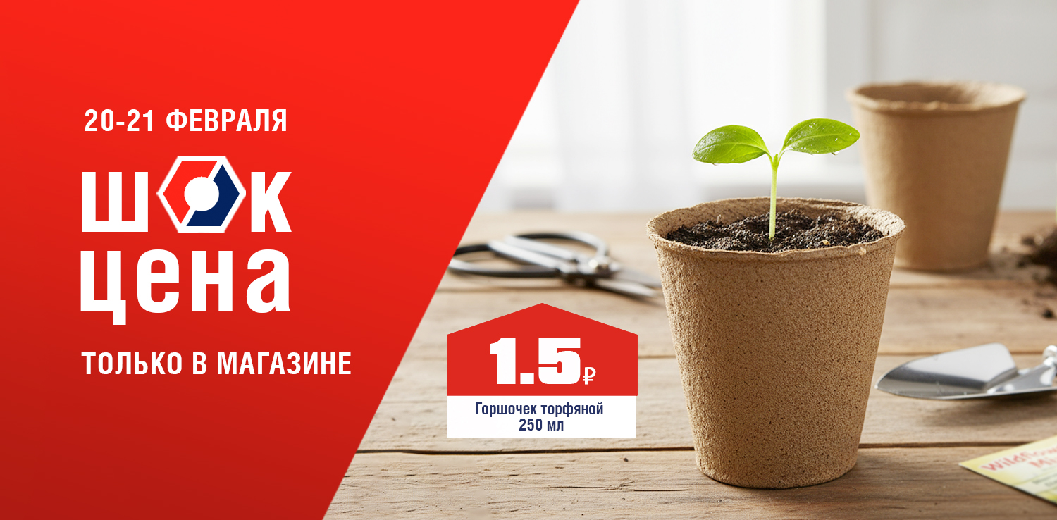 Хотите забыть о пикировке и поврежденных корнях? Торфяной горшочек — ваш надежный помощник. Рассада растет в нем до высадки, а затем отправляется в грунт без стресса и травм. Биоразлагаемый материал горшочка обеспечивает дополнительное питание и идеальную приживаемость. 20 и 21 февраля в розничных магазинах ДомоСтрой не пропустите ШОК-цену: