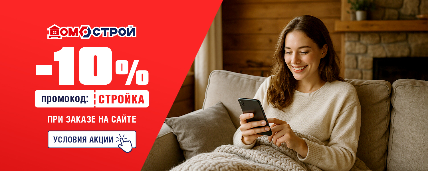 Успейте воспользоваться скидкой 10% по промокоду СТРОЙКА. Скидку 10% можно получить при заказе на сайте, для этого: