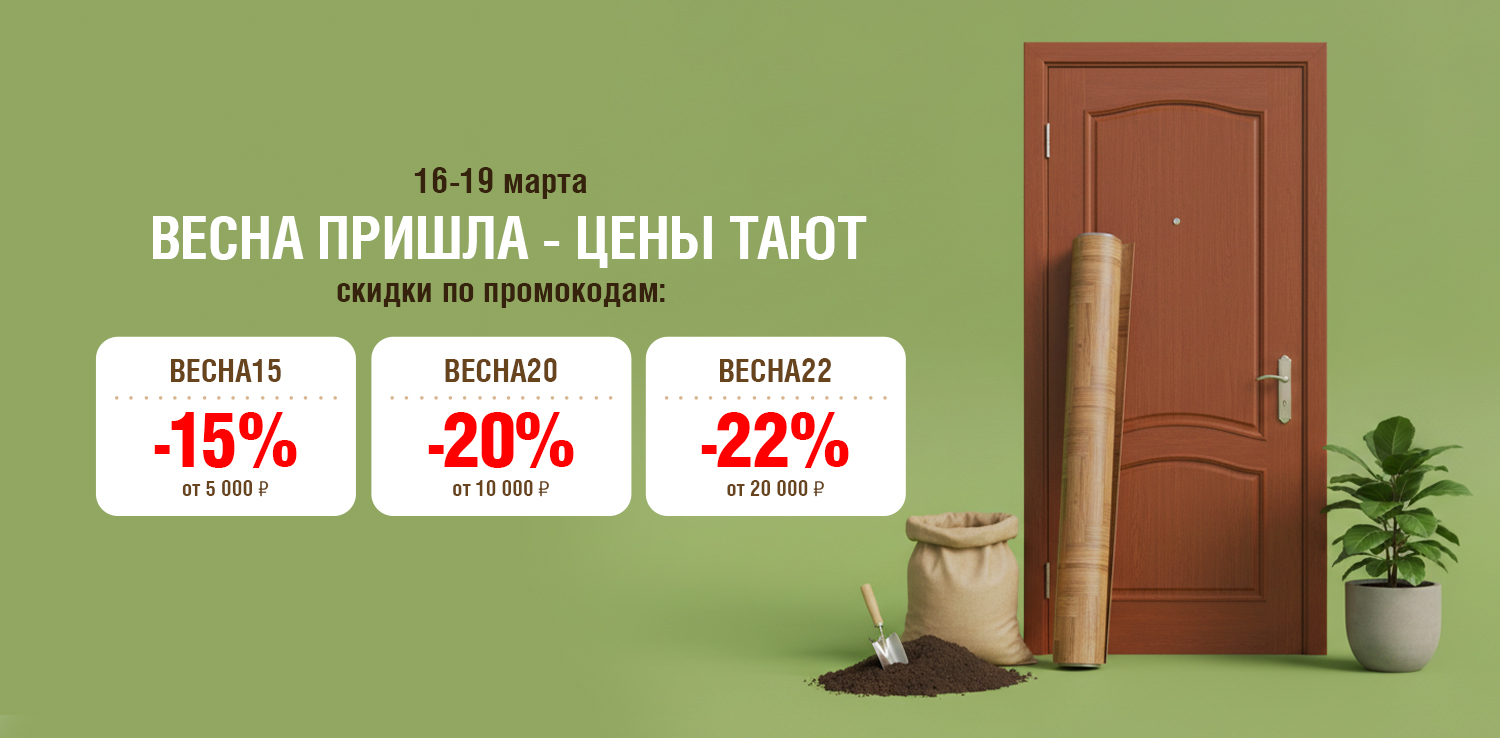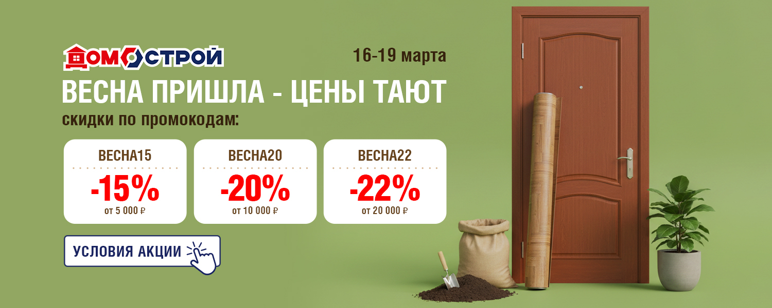 С первыми тёплыми днями хочется перемен. Обновить пространство, добавить уюта, наконец-то заняться тем, что откладывалось всю зиму. Весна — идеальное время для нового старта, особенно когда перемены начинаются с дома. Поэтому на сайте ДомоСтрой с 16 по 19 марта действует акция с прогрессивной скидкой — чем больше сумма покупки, тем выше экономия: